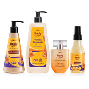 Plum Vanilla Caramello Bath & Body Bundle by Plum BodyLovin' | Body Wash, Body Lotion, Perfume & Body Mist | Complete Vanilla Caramello Bundle | Bodycare Routine - 240ml +, 400ml + 50ml + 150ml