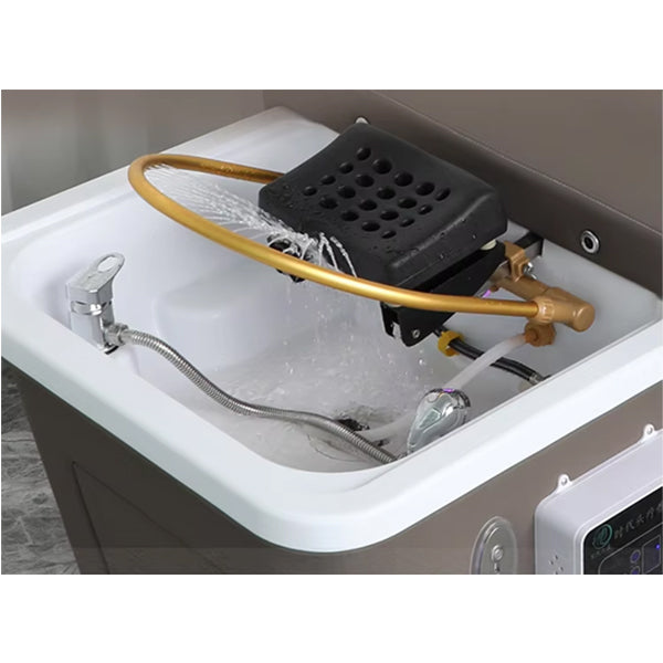 The Charmaine Shampoo Bed with Pedicure Basin is a luxurious, all-in-one wellness station tailored for high-end salons and spas that prioritize both practicality and indulgence. This Back lifting spa bed boasts a sleek, contemporary design with an integrated pedicure basin and Shower massage table functionality, delivering a comprehensive full-body care experience in a single unit. Its Hydraulic lifting massage bed mechanism allows for smooth, silent backrest adjustments, ensuring clients are perfectly comfortable during shampooing, pedicures, or massage sessions.