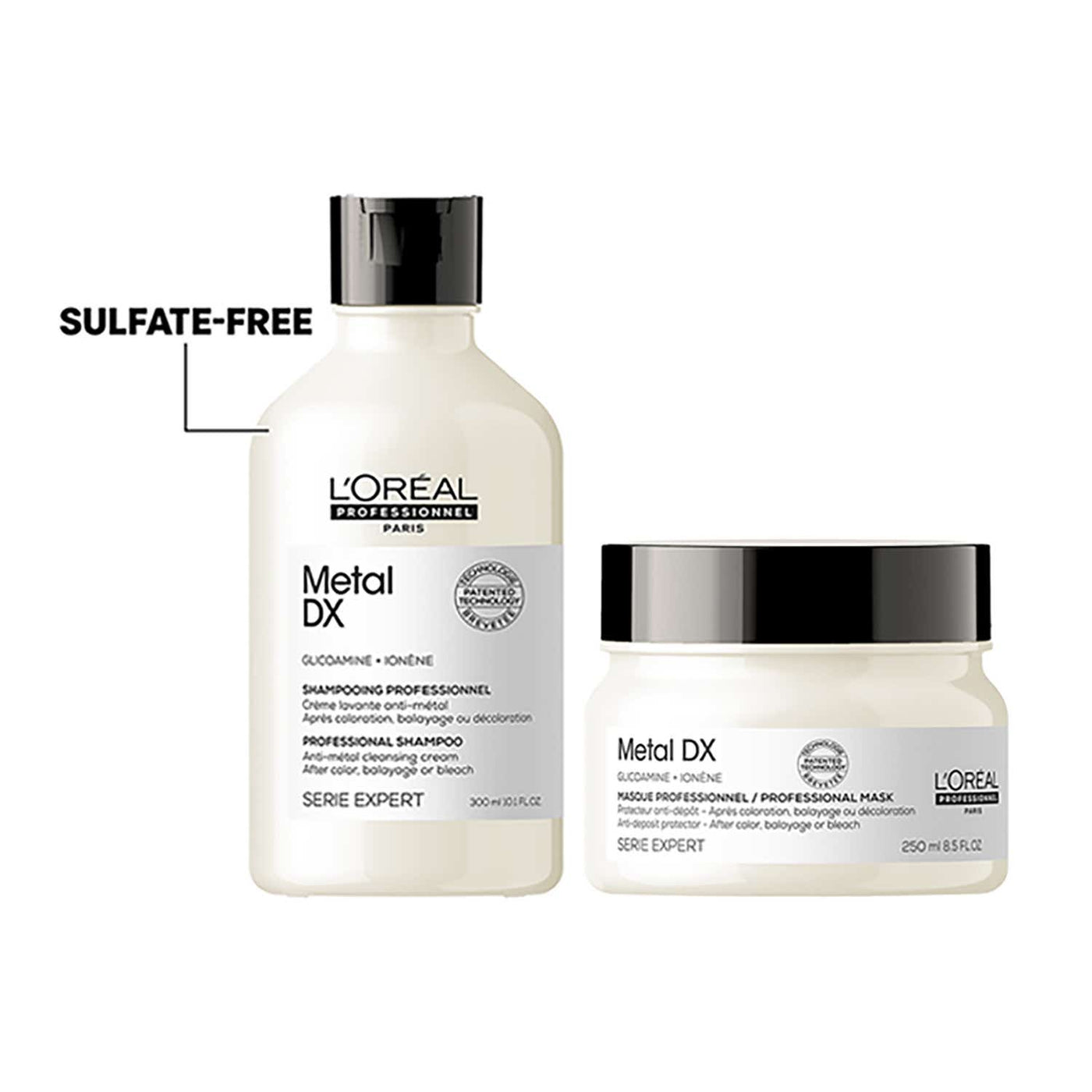 The L’Oreal Professionnel Metal DX Complete Care Combo brings together a full multi-step system designed to support hair that undergoes frequent color services, heat styling, or environmental exposure. This professional routine helps prepare the hair fiber, cleanse effectively, condition deeply, rebalance structure, and seal with nourishment for a soft, smooth and manageable finish.