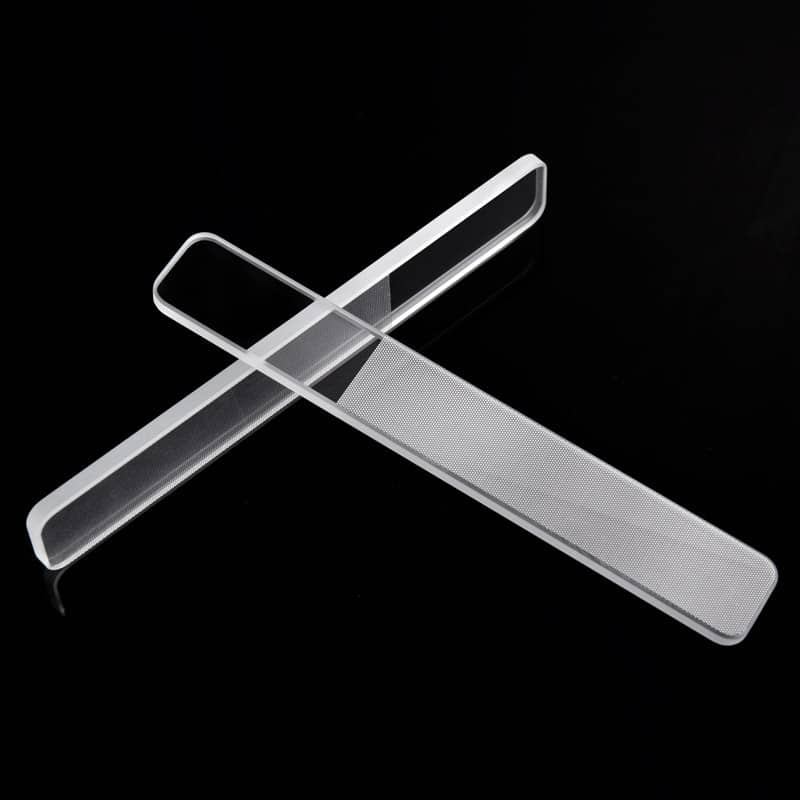 Tempered nano crystal glass, known for its durability and gentle filing surface.