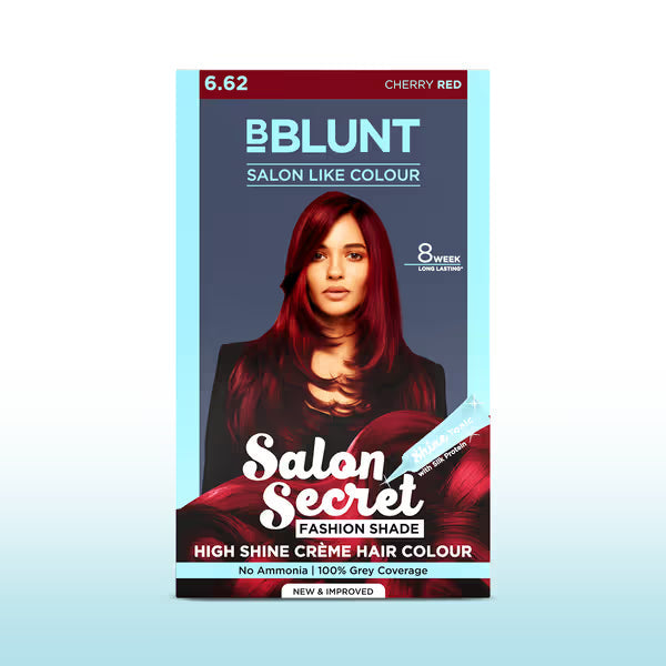 Experience the allure of radiant cherry red hair with BBLUNT's Salon Secret range. Specially formulated for Indian hair, this colourant ensures deep penetration and long-lasting vibrancy. The inclusion of the Shine Tonic, enriched with silk proteins, not only amplifies the colour's richness but also leaves your hair feeling soft and glossy. Its no-ammonia composition ensures a gentle colouring experience, making it a preferred choice for those seeking salon-quality results at home.