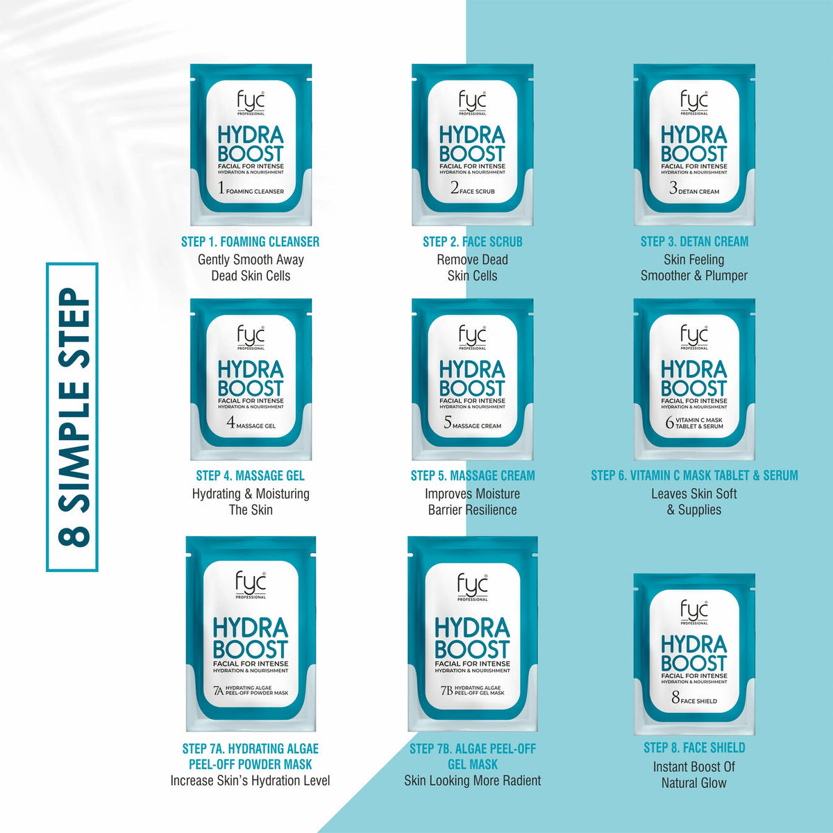 FYC Professional HydraBoost Facial Kit Pouch 8 Step Facial Kit, 183g