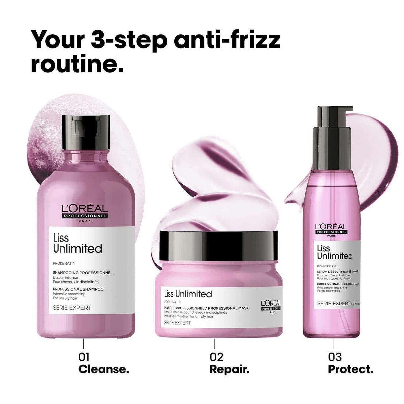 Together, this professional trio provides long-lasting smoothness and helps reduce the feel of frizz, making hair easier to manage in everyday styling routines.