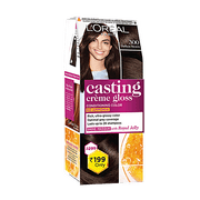 L'Oreal Paris Casting Crème Gloss in 300 Darkest Brown is a semi-permanent, ammonia-free hair color that delivers deep, rich brown tones with a natural shine. The multi-tonal formula provides 100% gray coverage while ensuring fade-resistant color for up to 28 washes. Enriched with Royal Jelly, it nourishes the hair from root to tip, leaving it silky, soft, and manageable. Whether you're refreshing your color or trying a new shade, this easy-to-use formula enhances your natural hair color while giving it a salon-like glossy finish.