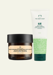 Soothe and refresh your skin with this calming skin-care duo from The Body Shop. The Mediterranean Almond Milk with Oats Instant Soothing Mask envelops your complexion in a creamy blend of ultra-nourishing almond milk and finely milled oats, designed to soothe redness, hydrate sensitive skin, and visibly calm irritation in just minutes. Complementing this, the Aloe Soothing Cream Cleanser gently removes impurities and makeup with a soft, velvety texture—enriched with soothing aloe vera to cleanse without stripping, for a calm, comfortable finish.