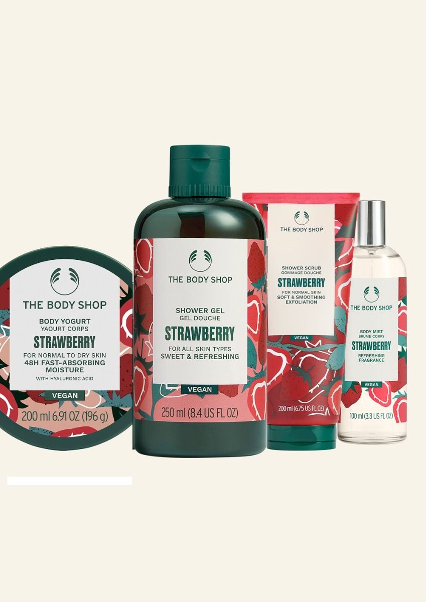 After exfoliating, apply the Strawberry Body Yogurt, a lightweight, non-greasy gel-cream that absorbs instantly, providing 48-hour moisture and leaving your skin hydrated and glowing. Complete your routine with the Strawberry Body Mist, infused with cold-pressed strawberry seed oil and sugarcane essence, to spritz on a light, irresistible fruity scent that keeps you feeling fresh and sweet throughout the day.